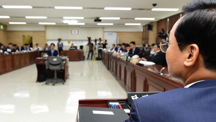 11일 오전 경기 수원 경기도의회에서 열린 '경기도 공공기관장 후보자 2차 인사청문회'에서 최금식 경기도시공사 사장 후보자가 의원들의 질문에 답하고 있다. 이번 2차청문회는 내정자가 자기소개와 직무수행계획을 설명하고 질의응답하는 방식으로 진행됐다.