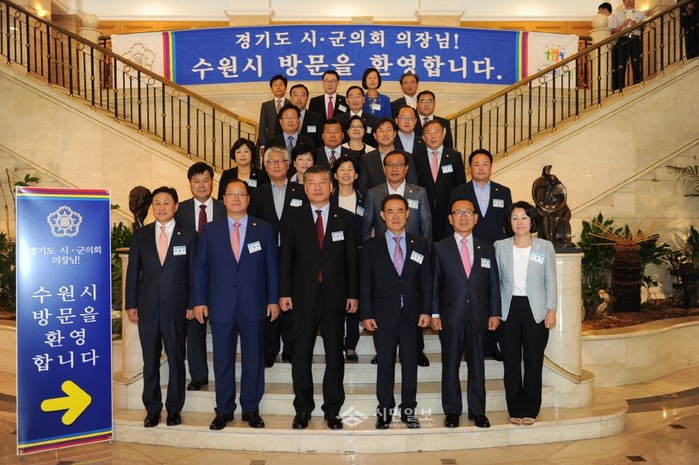 경기도 시군의회 의장협의회(31개 시·군)는 11일‘제119차 정례회의’를 수원시의회 주관으로 11일 동수원 호텔캐슬에서 개최했다. 사진은 제11기 경기도시·군의회 의장협의회장에 성남시의회 박권종 의장(새누리당)을 선출 후 기념촬영 하고있는 모습. (사진제공=수원시의회)