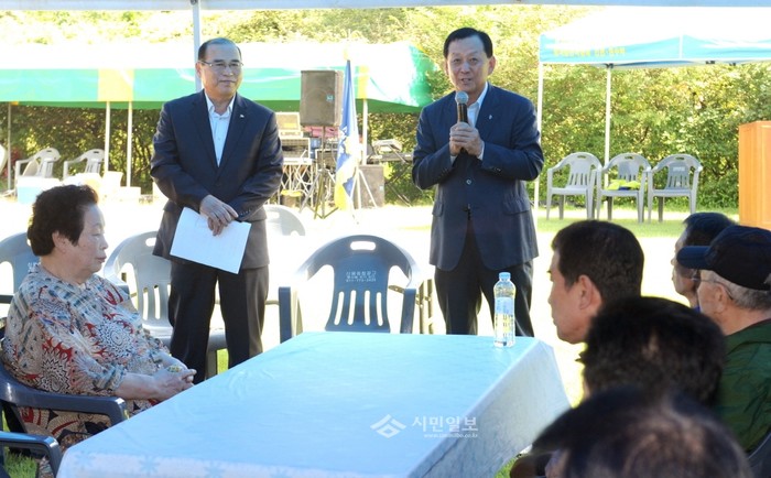 지난 11일 미사리 조정경기장에서 열린 '전몰군경유족회 체육행사'에 이교범 하남시장이 참석해 회원들을 격려하고, 회원들이 하나 돼 더욱 살기 좋은 도시로 성장할 수 있도록 함께 노력해달라고 당부하고 있다.(사진제공=하남시청)