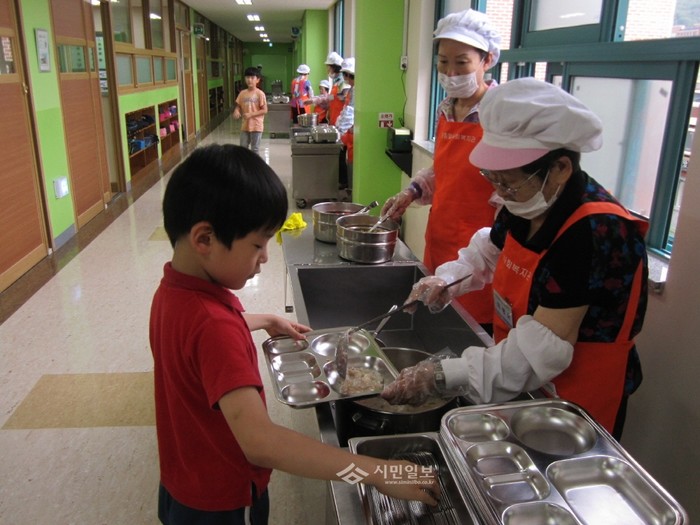 | ▲ 노인공공일자리 사업의 일환으로 학교에서 급식도우미를 하고 있는 노인의 모습.(사진제공=서대문구청) | ||