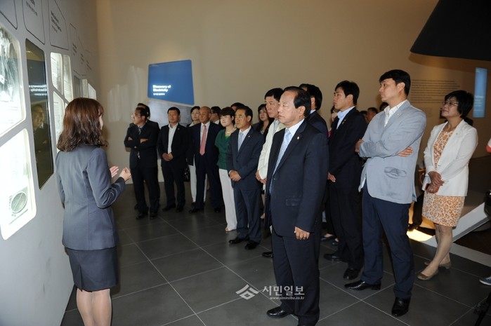 경기 수원시의회 방문단 40여명은 최근 끊임없는 혁신을 통해 인류의 삶에 새로운 가치를 창조해온 수원시 대표기업 '삼성전자'의 선진 경영에 대해 알아보고자 전시공간과 영상관 등 지상 6층, 연면적 3312평 규모의 삼성이노베이션뮤지엄과 디지털시티를 견학했다. (사진제공=수원시의회)