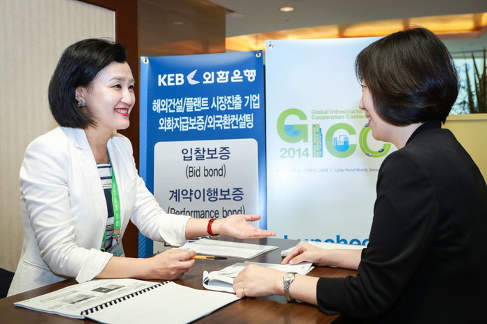17일 외환은행에 따르면 국토교통부가 주최하고 해외건설협회가 주관하는 이번 'GICC 2014' 행사에 외환은행이 시중은행 단독으로 참가해 행사기간 동안 해외건설에 참여하고자 하는 국내기업들의 입찰, 수주 관련 외화지급보증 발급절차 등 외국환 관련 일대 일 맞춤 컨설팅을 무료로 제공하고 있다.