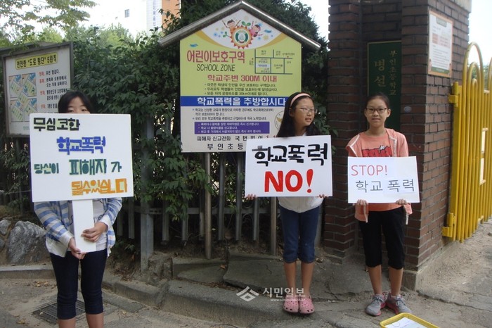 우리학교 정문서 "학교폭력은 안돼요"