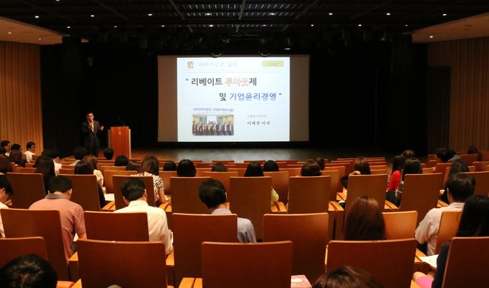 이번 CP교육은 한국제약협회의 기업윤리헌장 선포에 대한 참가 의지를 표명하고, 임직원들에게 사회 윤리경영 요구 수준에 맞춰 리베이트 근절과 투명하고 적법한 정도 경영의 마음가짐을 재차 강조하기 위해 마련됐다. 대웅제약 이세찬 이사(컴플라이언스팀 팀장)가 직접 교육을 실시했으며 본사 임직원 200여명이 참여하여 성황리에 마무리됐다.