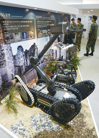 24일 경기 고양시 일산 킨텍스에서 개막한 2014 대한민국 방위산업전(DX Korea 2014)에서 SG로봇 등이 전시되어 있다. 대한민국 방위산업전은 27일까지 나흘간 열린다.