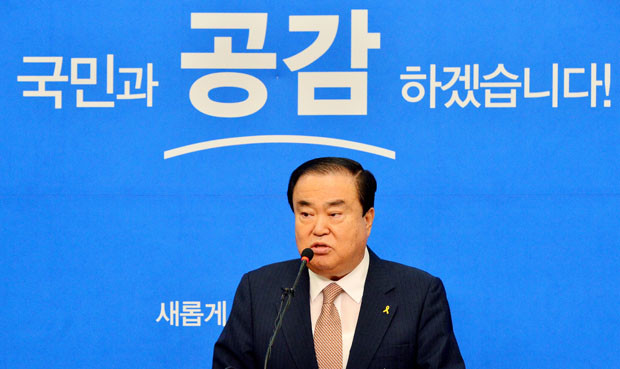 새정치민주연합 문희상 비상대책위원장이 28일 오전 서울 여의도 국회에서 새누리당을 향해 세월호 특별법 협상에 응할 것을 촉구하는 기자회견을 하고 있다. 문 위원장은 이날 새누리당 김무성 대표에게 여야 대표회담을 긴급 제안하며, “기자회견 후부터 김 대표의 화답을 기다리겠다”고 전했다.