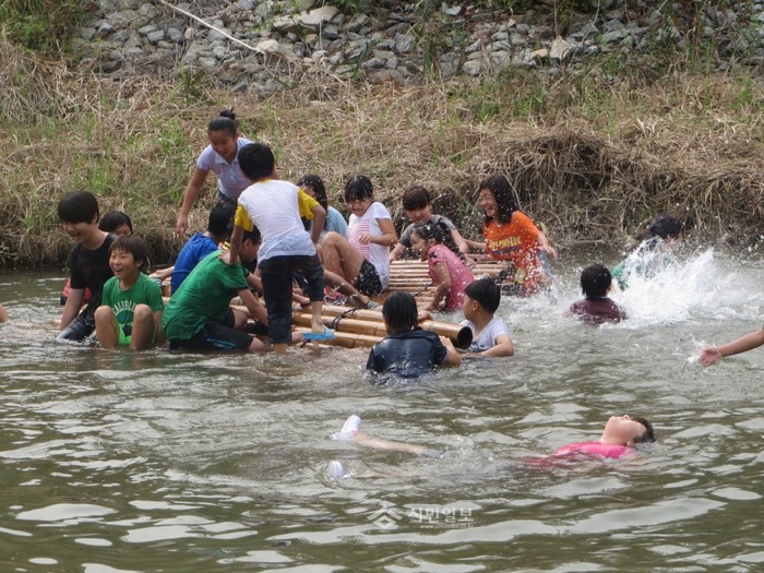 지난 27일 경기 부천신흥초가 실시한 가을맞이 체험프로그램에 참가한 신흥초 다문화학생 및 저소득학생 등 학생들 40여명이 양평의 '외갓집체험마을'을 방문해 물놀이를 즐기고 있다. (사진제공=부천교육지원청)