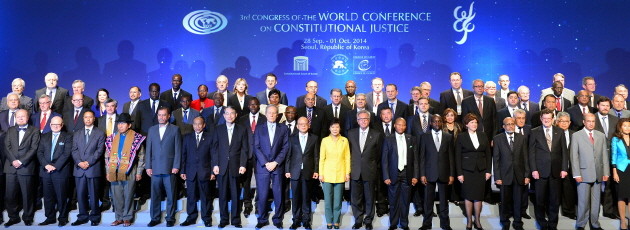 박근혜 대통령이 29일 오전 서울 중구 장충동 신라호텔에서 열린 ‘세계헌법재판회의 제3차 총회’에서 약 100개국 헌법재판기관장 및 국제기구 대표들과 사진촬영을 하고 있다.