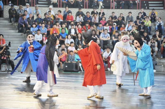 지난 29일 '2014 안동국제탈춤 페스티벌'이 열리고 있는 경북 안동시 탈춤공원 공연장에서 수영야류가 공연되고 있다.