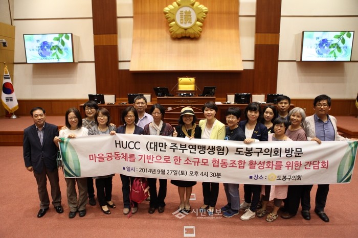 서울 도봉구의회가 지난 27일 마을공동체를 기반으로 한 소규모 협동조합인 '대만주부연맹생협 교류단'이 방문함에 따라 구의원 의원과의 간담회를 개최했다. 사진은 간담회를 마친 후 구의원들과 교류단 관계자들이 기념촬영을 하는 모습. (사진제공=도봉구의회)