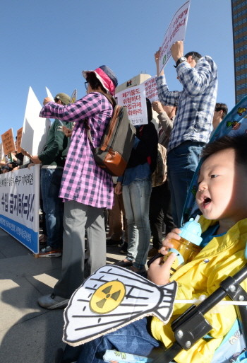 6일 오전 서울 종로구 세종로 광화문광장에서 환경운동연합 회원들이 '일본산 수산물과 폐기물 수입 금지 촉구' 기자회견을 하고 있다. 환경운동연합은 우리 정부의 일본 후쿠시마 주변 8개 현 수산물 금지 조치 재검토 계획에 대해 "방사능 오염에 따른 수입제한 조치는 WTO 제소 사안이 아니다. 아직도 계속 후쿠시마 원전 방사능 오염수가 누출되는 상황에서 중국, 대만, 러시아는 일본산 식품 수입을 금지·제한하고 있다. 수입 해제가 아닌 규제를 강화하고 일본산 폐기물 수입을 중단하라"고 주장했다.