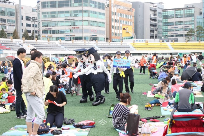 경기 김포경찰서는 최근 사우공설운동장에서 열린 '제1회 북페스티벌'에서 4대 사회악 근절을 위한 캠페인을 실시했다. 사진은 경찰 마스코트인 포돌이와 포순이가 이날 행사장을 돌며 홍보활동을 펼치는 모습. (사진제공=김포경찰서)