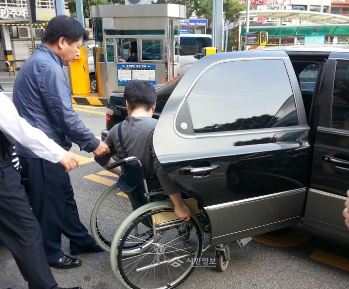 | ▲ 신촌동 지역사회복지협의체와 복지통장, 직능단체가 진행하고 있는 '병원동행 서비스'를 통해 제공된 차량에 탑승하고 있는 지역주민의 모습. (사진제공=서대문구청) | ||
