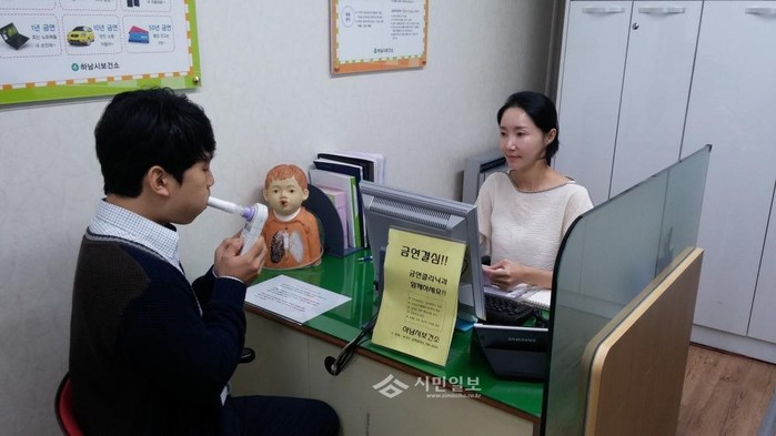 최근 경기 하남시 보건소는 금연클리닉을 진행, 신청자를 대상으로 단계별 상담을 실시하고 니코틴 의존도 평가 후 금연 행동요법과 패치, 껌 등 금연보조제를 제공했다. 사진은 금연 희망자가 클리닉에 참가해 검사를 받는 모습. (사진제공=하남시청)
