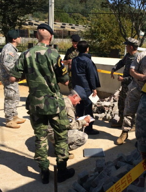 UN 군사정전위원회 관계자들이 지난 11일 경기도 연천군 중면사무소와 인근 군부대를 방문, 지난 10일 대북전단을 향해 발사된 14.5㎜ 고사총 탄두가 떨어진 아군 지역을 조사하고 있다. (사진=육군 제공)
