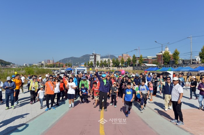 지난 12일 민주평화통일자문회의 동두천시협의회가 신천 둔치~송천교의 2km 구간에서 지역내 각 기관 단체장과 인근 시민 500여명이 참여한 가운데 '제5회 통일기원 한마음 걷기대회 및 통일축제'를 열었다. 사진은 걷기대회에 참여한 시민들의 모습. (사진제공=동두천시청)