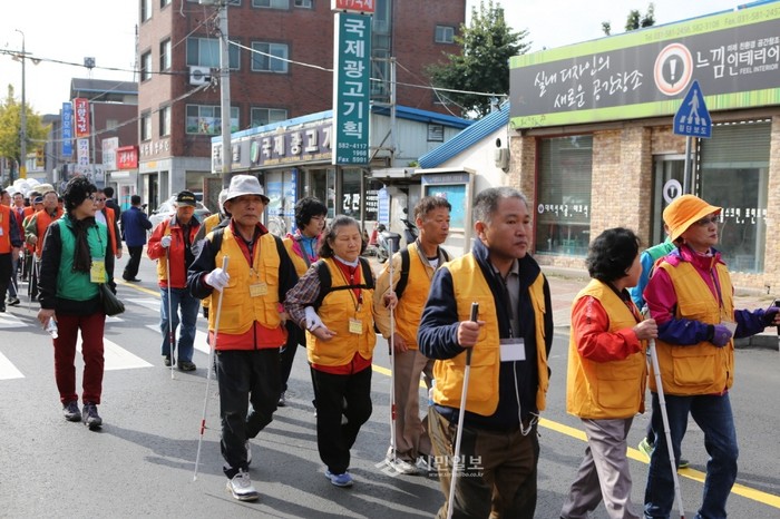 15일 경기 가평군은 '제25회 흰지팡이 날' 및 '제88주년 점자의 날'을 기념하는 '전국 시각장애인 복지대회'를 가평 종합운동장에서 개최했다. 사진은 이날 대회 행사의 일환으로 진행된 가두행진 퍼포먼스 모습. (사진제공=가평군청)