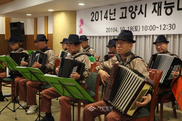 지난 18일 경기 고양시자원봉사센터가 고양종합운동장 연회장에서 최성 고양시장을 비롯해 지역내 재능나눔 봉사자 100여명이 참석한 가운데 '고양시 재능나눔 뱅크 간담회'를 개최했다. 사진은 고양시자원봉사센터에 등록된 재능봉사자들이 공연을 펼치고 있는 모습. (사진제공=고양시청)