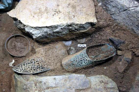 문화재청 국립나주문화재연구소가 23일 전남 나주 다시면 복암리 고분군(羅州 伏岩里 古墳群·사적 제404호)과 인접한 정촌 고분(나주시 향토문화유산 제13호)에 대한 발굴조사 발표 결과 완벽한 형태의 백제계 금동 신발 등이 출토됐다. 연구소는 이 고분을 마한시대 수장층의 돌방무덤으로 보고 있다. 사진은 고분 발굴조사 당시 발견된 금동신발.