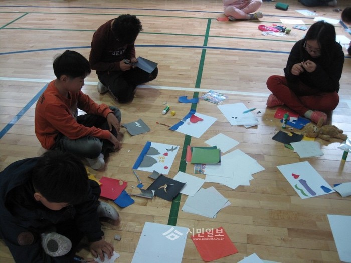 경기 연천군 청산면에 위치한 초성초등학교는 최근 독도의 날(10월25일)을 맞아 나만의 독도 손수건 만들기, 독도 골든벨 등 '독도사랑 캠프'를 운영했다. 사진은 독도사랑 캠프에 참가한 학생들이 독도사랑 그리기를 하는 모습. (사진제공=연천초등학교)