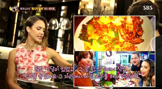 배우 제시카 알바가 29일 오후 방송된 SBS '한밤의 TV 연예'에서 한국음식은 다 좋아한다고 밝혀 눈길을 끌었다.