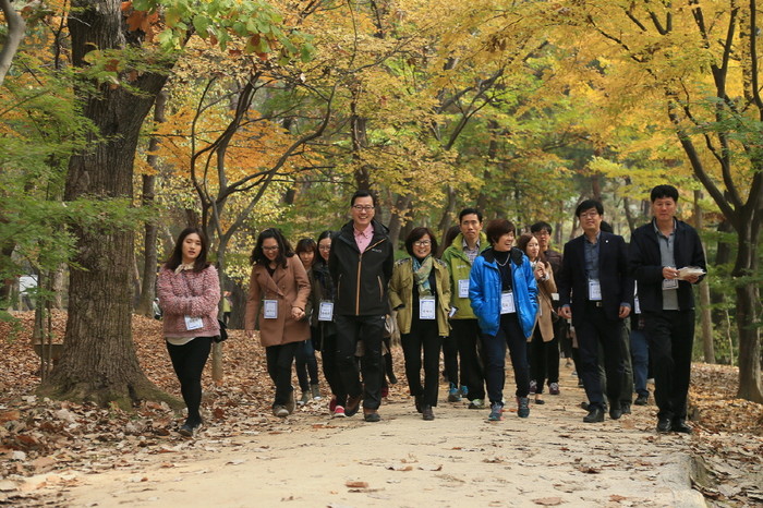 지난달 30일 경기 고양시 덕양구는 구청 소회의실과 덕양구 서오릉에서 신규 공직자 28명과 이상영 구청장을 비롯한 간부공무원 등 총 50여명이 참석한 가운데 '새내기와의 만남'을 진행했다. 사진은 서오릉을 걸으며 대화의 시간을 보내는 이 구청장 및 공무원들의 모습. (사진제공=고양시청)