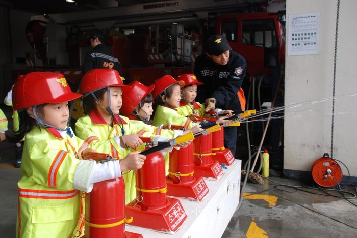 최근 경기 양주소방서는 화재 등 재난 발생이 증가하는 겨울철을 맞이해 11월을 ´불조심 강조의 달´로 정하고 한 달 동안 세밀한 현장중심의 예방활동 및 다양한 119이벤트 등을 실시했다. 사진은 이날 교육에 참가한 어린이들이 소화기를 작동 중인 모습. (사진제공=양주소방서)