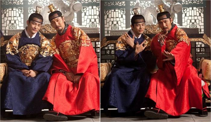 5일 KBS 수목드라마 '왕의 얼굴' 측은 선조 역의 이성재와 광해 역의 서인국이 함께 찍은 사진을 공개했다.