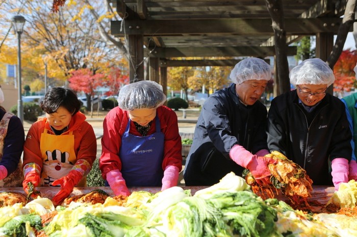 5일 경기 가평군의 가평체육관, 가평읍, 설악면 등 6개 지역 면사무소 등에서 여성단체협의회원, 주민자치위원, 새마을지도자 등 봉사자들이 참여한 가운데 '사랑의 김장김치 담그기' 행사가 열렸다. 이날 만든 김장김치는 홀몸노인, 소년소녀가장 등 어려운 이웃에게 전달된다.(사진제공=가평군청)