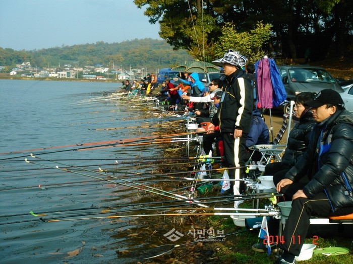 최근 경기 화성시가 (사)한국낚시업중앙회 화성지역회와 함께 내수면 수산업 발전과 관광 화성 이미지 제고를 위해 팔탄면 율암리 대성저수지(10ha)에서 개최한 '화성시장배 전국민물낚시대회'에 전국 민물낚시 동호인 530여명이 참여해 낚시대를 기울이고 있다. (사진제공=화성시청)