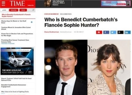 지난 5일(현지시간) 베네딕트 컴버배치 측은 이날 발행된 영국 런던 타임지 경조사란을 통해 영화 제작자 겸 배우인 소피 헌터와 약혼했다고 밝혔다.