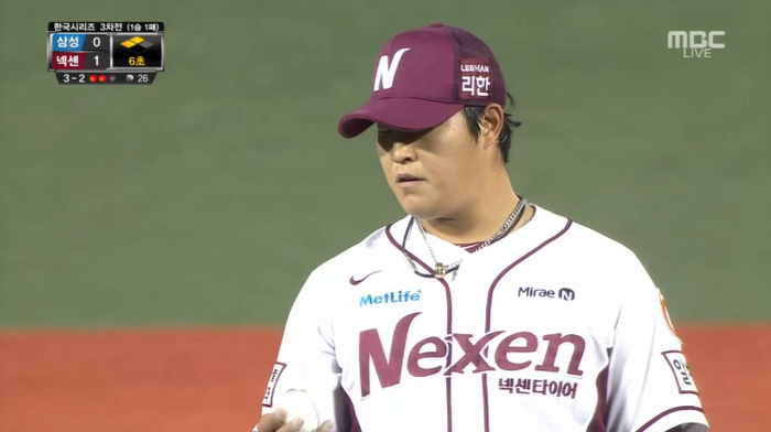 7일 목동구장에서 진행중인 '2014프로야구 한국시리즈 3차전'은 넥센 히어로즈와 삼성 라이온즈가 현재 스코어 1대 0을 기록하고 있는 상황.