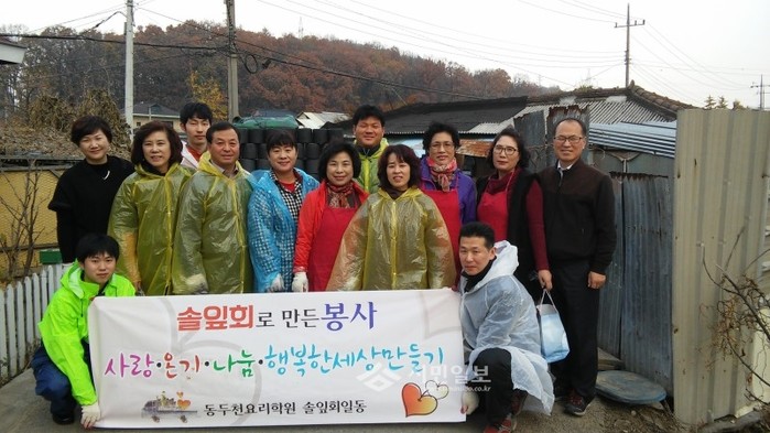 경기 동두천시 요리학원 수강생 모임인 솔잎회는 최근 송내동 주민센터에서 저소득층 5가구를 선정해 연탄 1000장을 전달하는 ‘사랑의 연탄나누기’ 행사를 실시했다. 사진은 이날 연탄 나누기 봉사가 끝난 후 솔잎회 회원들의 기념촬영을 하고 있는 모습. (사진제공=동두천시청)