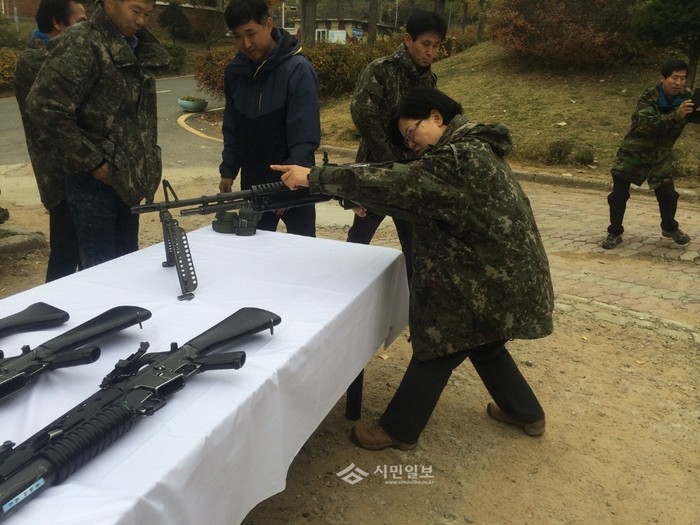 경기 부천시 소사구 괴안동 방위협의회는 최근 안보의식 강화 및 방위협의회 위원으로서의 자긍심 고취를 위해 507여단 48대대(부천 예비군 훈련장)를 견학했다. 사진은 이날 안보견학에 참가한 방위협의회 위원이 사격 자세를 취하고 있는 모습. (사진제공=부천시청)