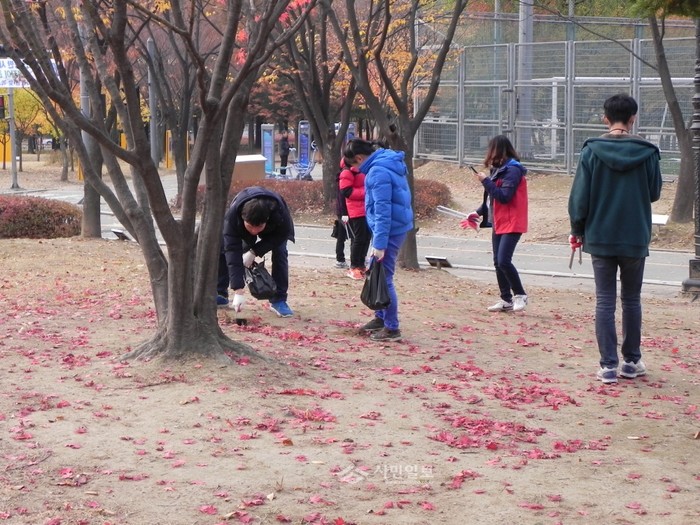 지난 11일 경기 안양시가 육림의 달을 맞아 자유공원에서 '나무 백만그루 심기 운동'을 기리기 위한 나무 돌보미 행사를 열었다. 참여 시민들은 10년 전 자신이 기증했던 나무를 다시 찾아 비료를 주고 전지작업을 하며 쓰레기를 수거하는 환경정화활동을 펼쳤다. 사진은 자신이 기증한 나무 근처에서 환경정화활동을 펼친 주민들의 모습. (사진제공=안양시청)