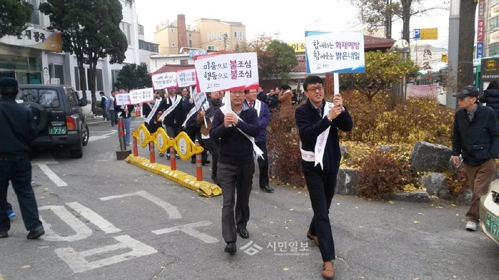 최근 경기 광주시는 '불조심 강조의 달'을 맞아 화재 및 산불예방 홍보, 생명의 문 비상구 안전점검 위한 캠페인을 경안시장과 광주터미널에서 실시했다. 사진은 시 관계자들이 피켓을 들고 안전점검의 날 캠페인을 하고 있는 모습. (사진제공=광주시청)