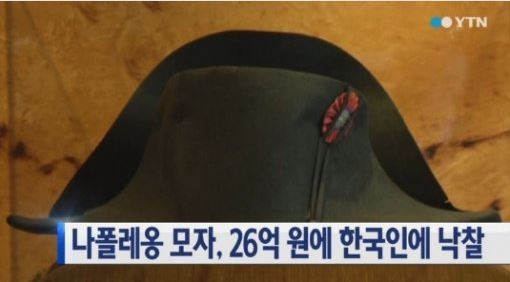 | ▲ 나폴레옹이 실제 썼던 모자로 26억원에 한국인에게 낙찰된 것으로 알려진 쌍각모자 (사진출처=YTN) | ||