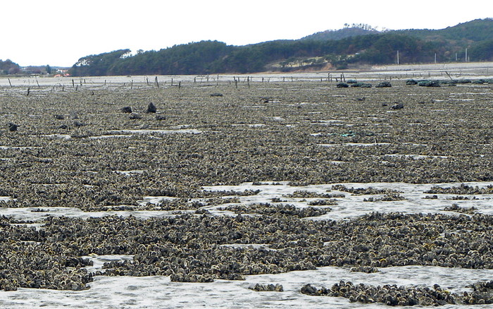 17일 서해안 최대 굴 생산지인 충남 보령시 천북면 장은리 앞 갯벌에 노랗게 꽃이 핀 자연산 석화 굴 밭이 장관을 이루고 있다.