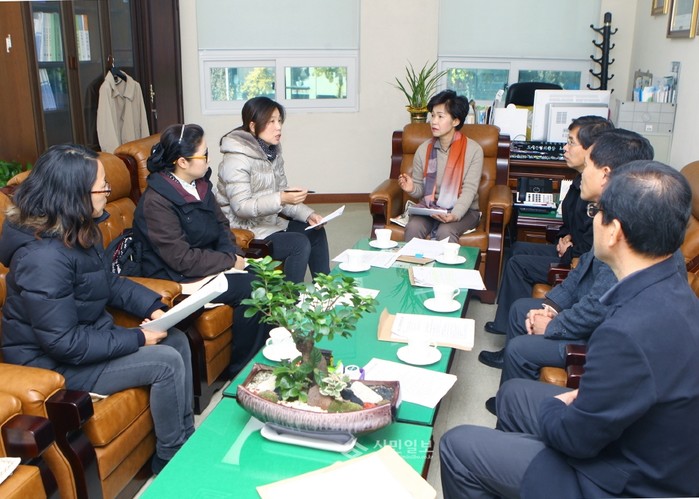최근 서울 송파구 영풍초등학교 앞 송파구 거여동 12-1번지 공영주차장 장기임대주택 건설 반대와 관련해 송파구의회 나봉숙 도시건설위원장이 영풍초등학교 학부모 대표와 구청 도시계획과 직원들과 면담을 실시하고 있다. (사진제공=송파구의회)