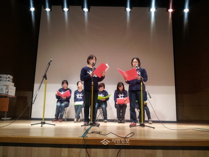 서울 강북구(구청장 박겸수)가 지난 25일 오후 3시 강북구 육아종합지원센터 1층 대공연장에서 다문화가족 200명이 참석한 가운데 '한국어 교실 수료식'과 문화행사를 개최했다. 사진은 이주 다문화 여성들의 자조모임 '오색별빛 연극단'의 연극 공연 모습. (사진제공=강북구청)