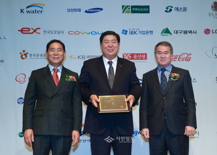 지난 26일 조길형 서울 영등포구청장이 한국언론진흥재단 프레스센터에서 열린 '제7회 대한민국인터넷소통대상 시상식'에서 소셜미디어를 통해 주민과 소통한 것이 높이 평가받아 공공부문 '소통CEO 대상'을 받았다. 사진은 조 구청장(가운데), 방재홍 인터넷신문위원회 위원장(왼쪽), 이종열 한국인터넷소통협회 명예회장(오른쪽)의 모습. (사진제공=영등포구청)