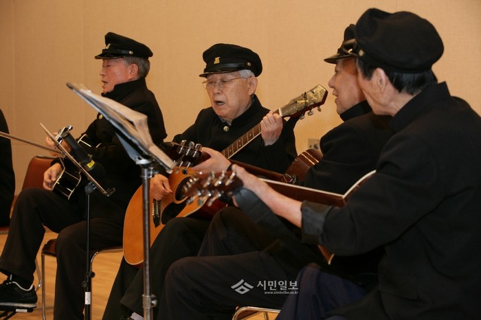 서울 성동구가 최근 시립성동노인종합복지관을 이용하는 노인들의 다양한 축제 '어르신문화예술제'를 열었다. 사진은 통기타 교실 수강생들이 그간 갈고 닦은 실력으로 통기타를 연주하고 있는 모습. (사진제공=성동구청)