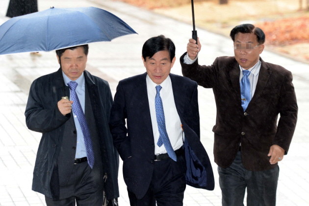 국가정보원 대선 개입 의혹 사건으로 기소된 원세훈 전 국정원장이 28일 오후 서울 서초구 서초동 서울고등법원에서 열린 항소심 3차 공판에 출석하고 있다.