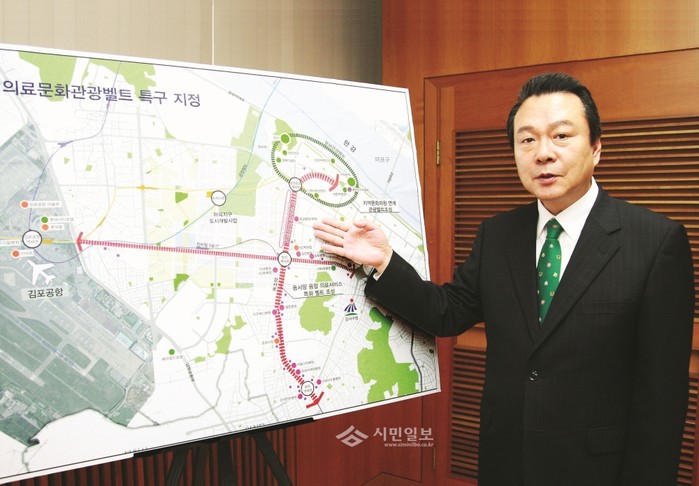 | ▲ 의료 문화 관광벨트를 설명하고 있는 노현송 강서구청장. (사진제공=강서구청) | ||
