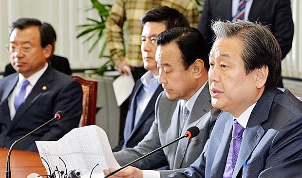 1일 오전 서울 여의도 국회 새누리당 대표실에서 열린 최고위원회의에서 김무성 대표가 청와대 문건 유출 관련 이야기 하고 있다.