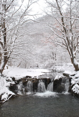2일 전날부터 16㎝(오전 8시 기준)의 적설량을 보이고 있는 전북 정읍지역, 눈이 내려 운치를 더한 내장산 경내 계곡의 모습이다.