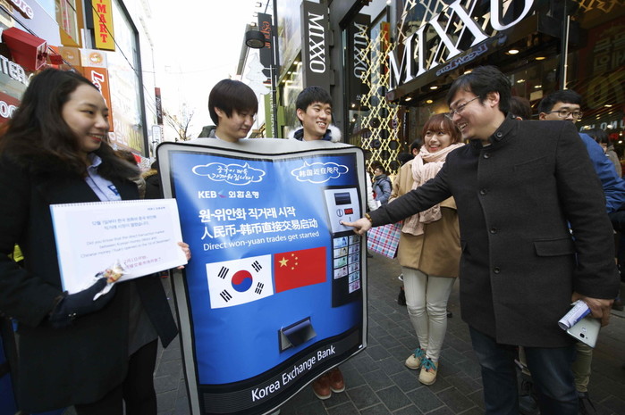 [시민일보=고수현 기자]최근 개장한 '원-위안화' 직거래 시장의 의의를 홍보하는 행사가 지난 6일 서울 명동에서 펼쳐졌다.