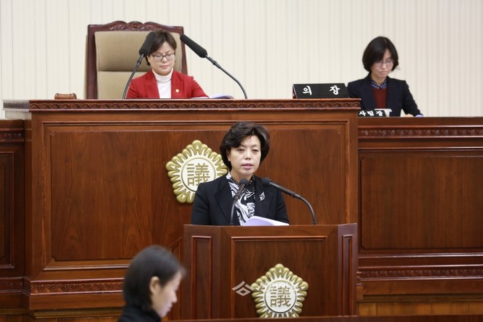 지난 5일 열린 '제203회 제2차 경기도 과천시의회 정례회'에서 신계용 과천시장이 "다른 어느 해보다 어려운 재정여건이지만 과천시 미래발전과 시민행복을 위한 민선6기 시정을 펼치는 데 더욱 노력하겠다"는 내용의 시정연설을 하고 있다. (사진제공=과천시청)