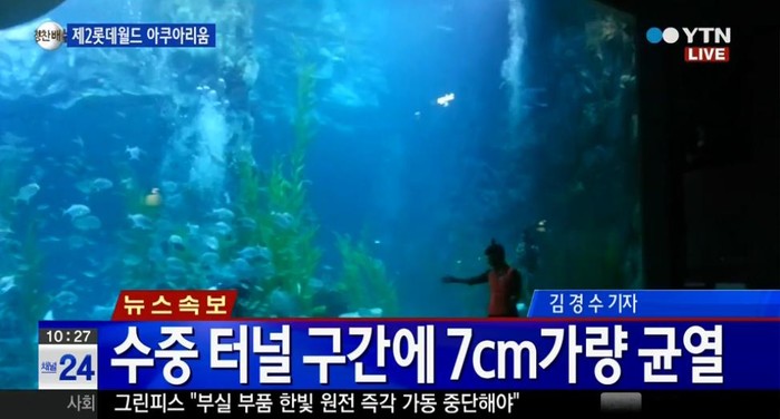 | ▲ 제2롯데월드 아쿠아리움 균열 (사진=YTN 방송 캡쳐) | ||