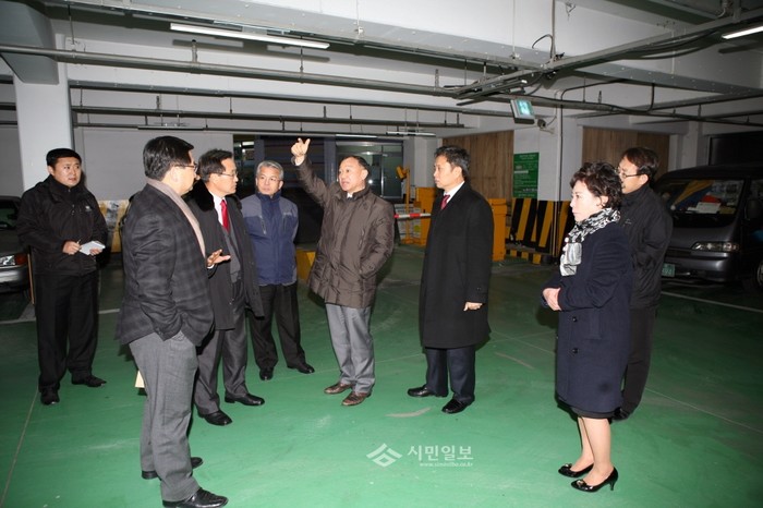 | ▲ 중구의회 복지건설위원회(위원장 이경일) 위원들이 2015년도 사업예산안 심사를 위해 동화동 공영주차장 현장을 방문, 관계자로부터 설명을 듣고 있다. (사진제공=중구의회) | ||